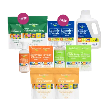 At Truly Free Home, every single product is designed with safety in mind, so every laundry or cleaning product is gentle & non-toxic.