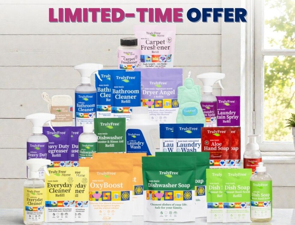The first time you order, you will get a free container—on us! After that, our system only sends you refills. Every time you order refills of Truly Free Home’s non-toxic cleaning laundry and cleaning supplies, you help save single-use plastics from ever being made.