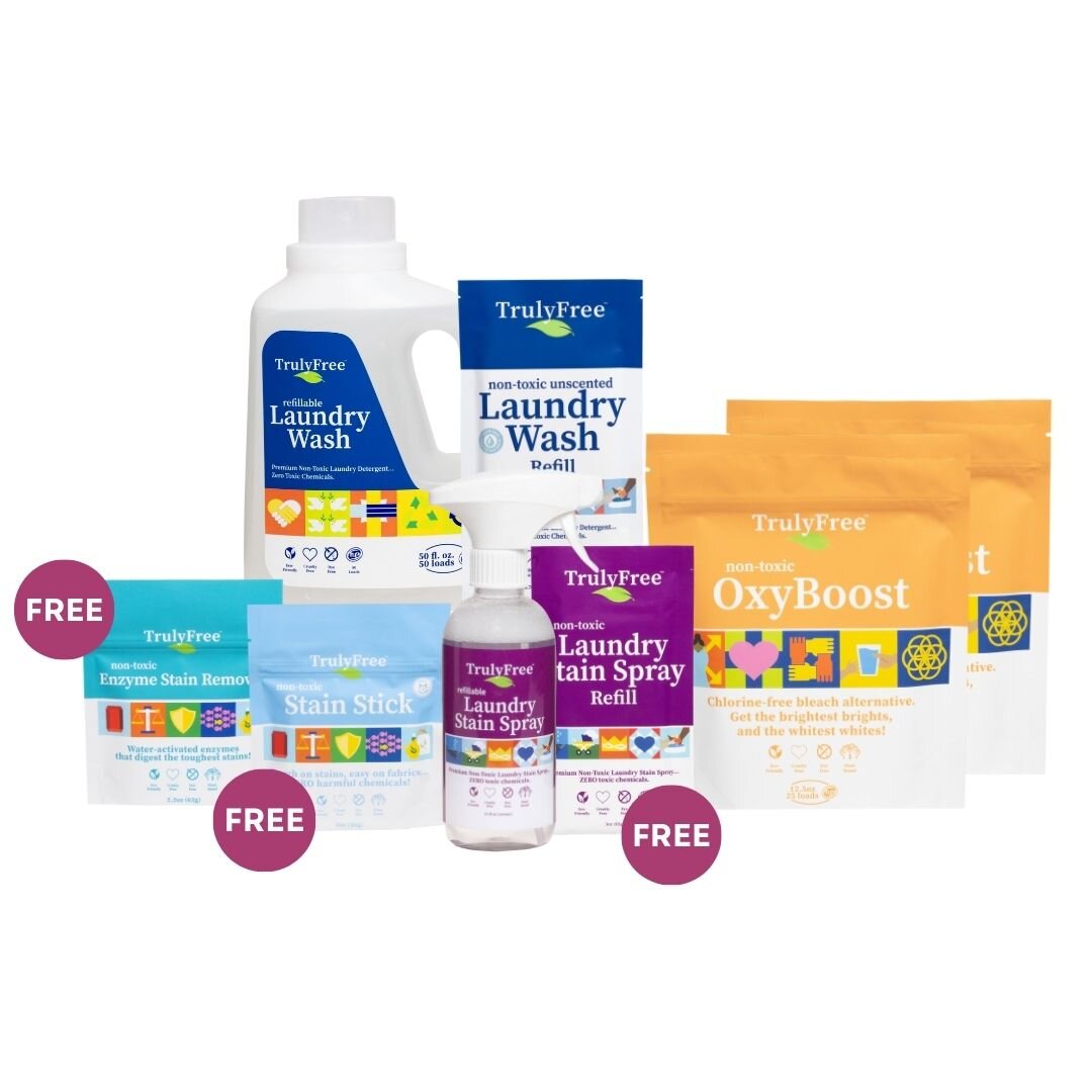 At Truly Free Home, every single product is designed with safety in mind, so every laundry or cleaning product is gentle & non-toxic.