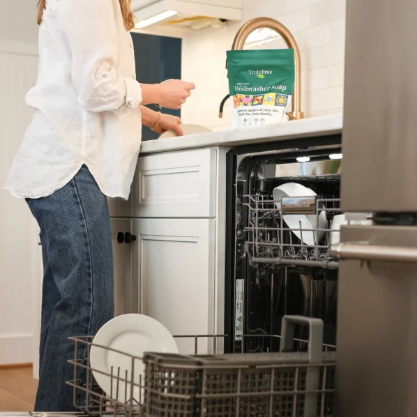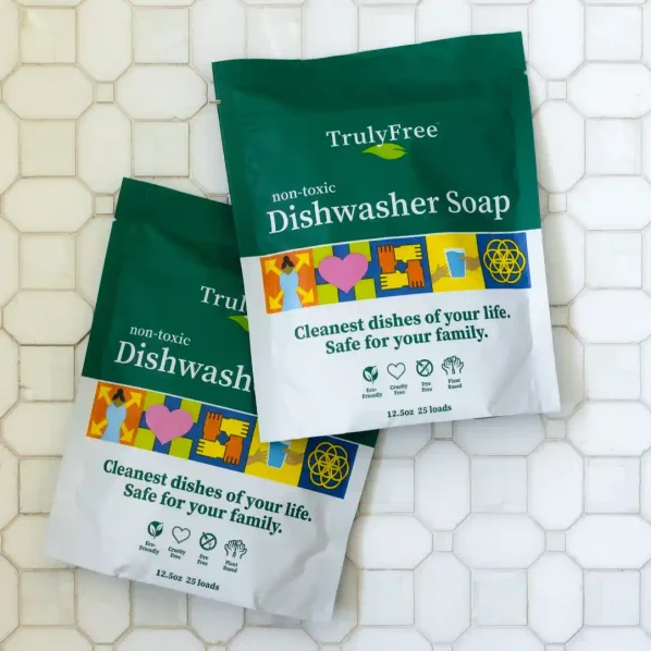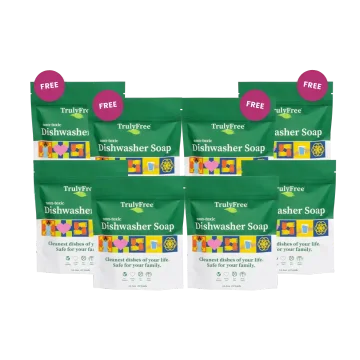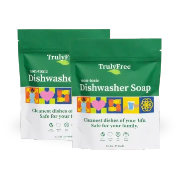Biodegradable and phosphate-free, Truly Free Home's Dishwasher Soap contains naturally derived enzymes that safely break down grease, food, and residue to avoid anything re-depositing on your dishes—even in hard water.