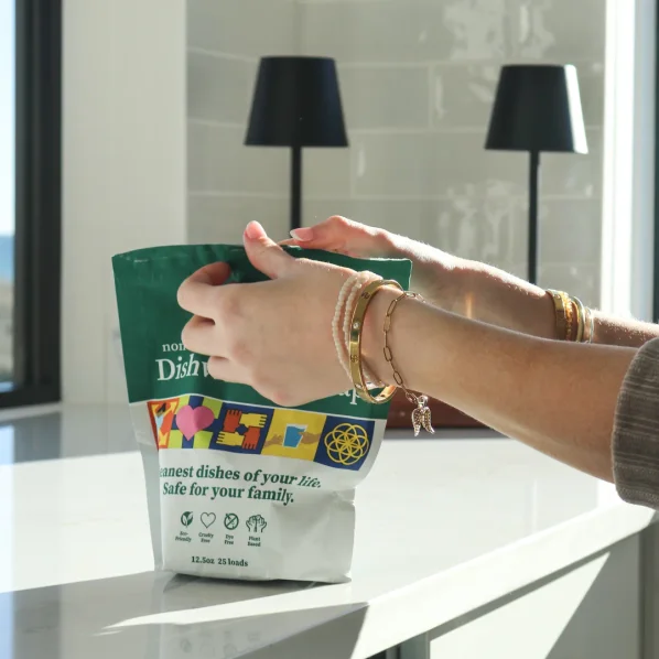 As part of our commitment to radical transparency, we share every ingredient in our non-toxic cleaning products. Dishwasher Soap is made with Acrylic Acid Homopolymer, Amylase, Alkoxylated Alcohol, TAED, Sodium Sulfate, Protease, Sodium Percarbonate, Sodium Carbonate, Sodium Carboxymethyl Inulin, Sodium Citrate.