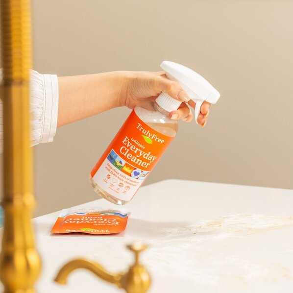 At Truly Free Home, we’re on a mission to free 10 million homes from harmful chemicals and plastic waste. That’s why your first refillable containers are free. After that, our eco-friendly refill pouches are delivered right to your door.