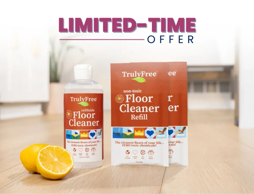 Truly Free Home Floor Cleaner’s powerful, plant-based formula cuts through grime—without leaving behind any harmful residues. So every swipe of your mop leaves the floors your kids and pets play on truly safe and clean.