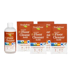 Truly Free Home's Floor Cleaner is a powerful, eco-friendly floor cleaner designed to clean and shine various types of floors without using harmful chemicals.