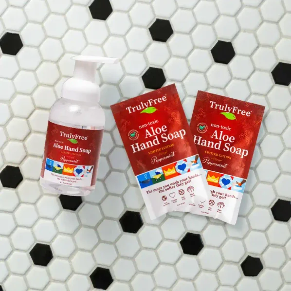 Just like our original unscented formula, non-toxic Peppermint Aloe Hand Soap has 10x concentrated Aloe Vera to replenish moisture as it gently cleanses. No more trade-off between clean and comfort. You don’t have to put up with dry, tight hands after washing them any longer.