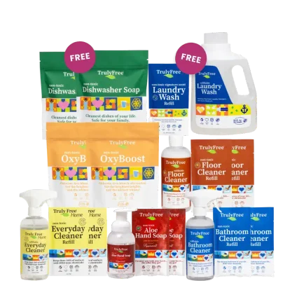 At Truly Free Home, every single product is designed with safety in mind, so every laundry or cleaning product is gentle & non-toxic.