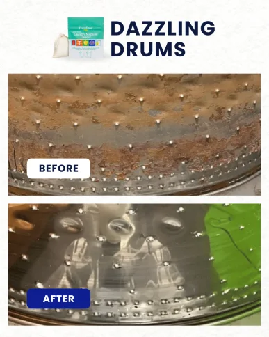 Traditional detergents leave behind a thick toxic residue that clings to your drum, seals, and hoses, so stains and odors never truly rinse away.