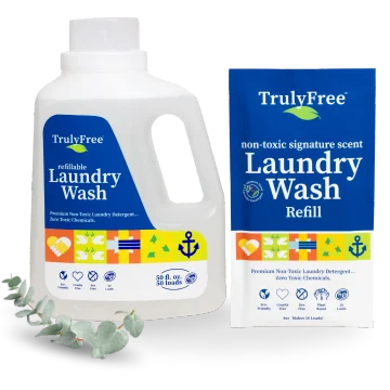 The first time you order, you will get a free container—on us! After that, our system only sends you refills. Every time you order refills of Truly Free Home’s non-toxic cleaning laundry and cleaning supplies, you help save single-use plastics from ever being made.