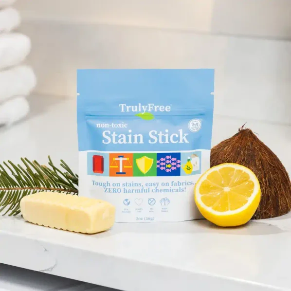 Truly Free Home's Stain Stick is a convenient on-the-go stain remover that magically erases tough stains while being gentle on fabrics. Use it as a pre-treatment to tackle tough stains on fabrics before washing.