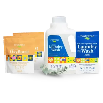 At Truly Free Home, every single product is designed with safety in mind, so every laundry or cleaning product is gentle & non-toxic.