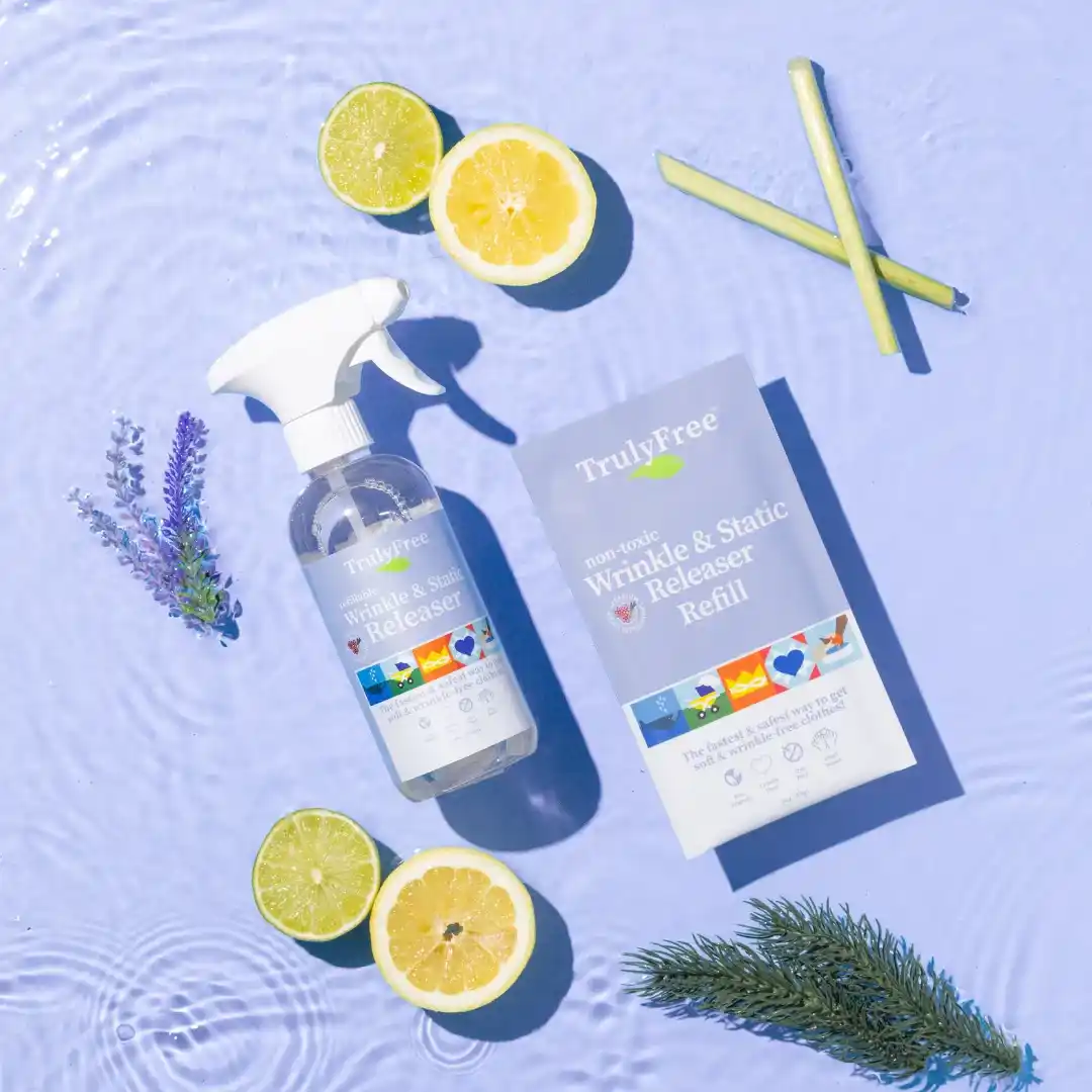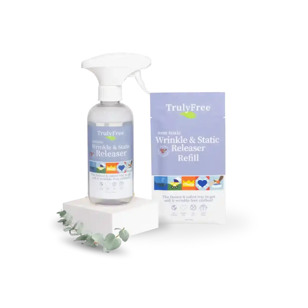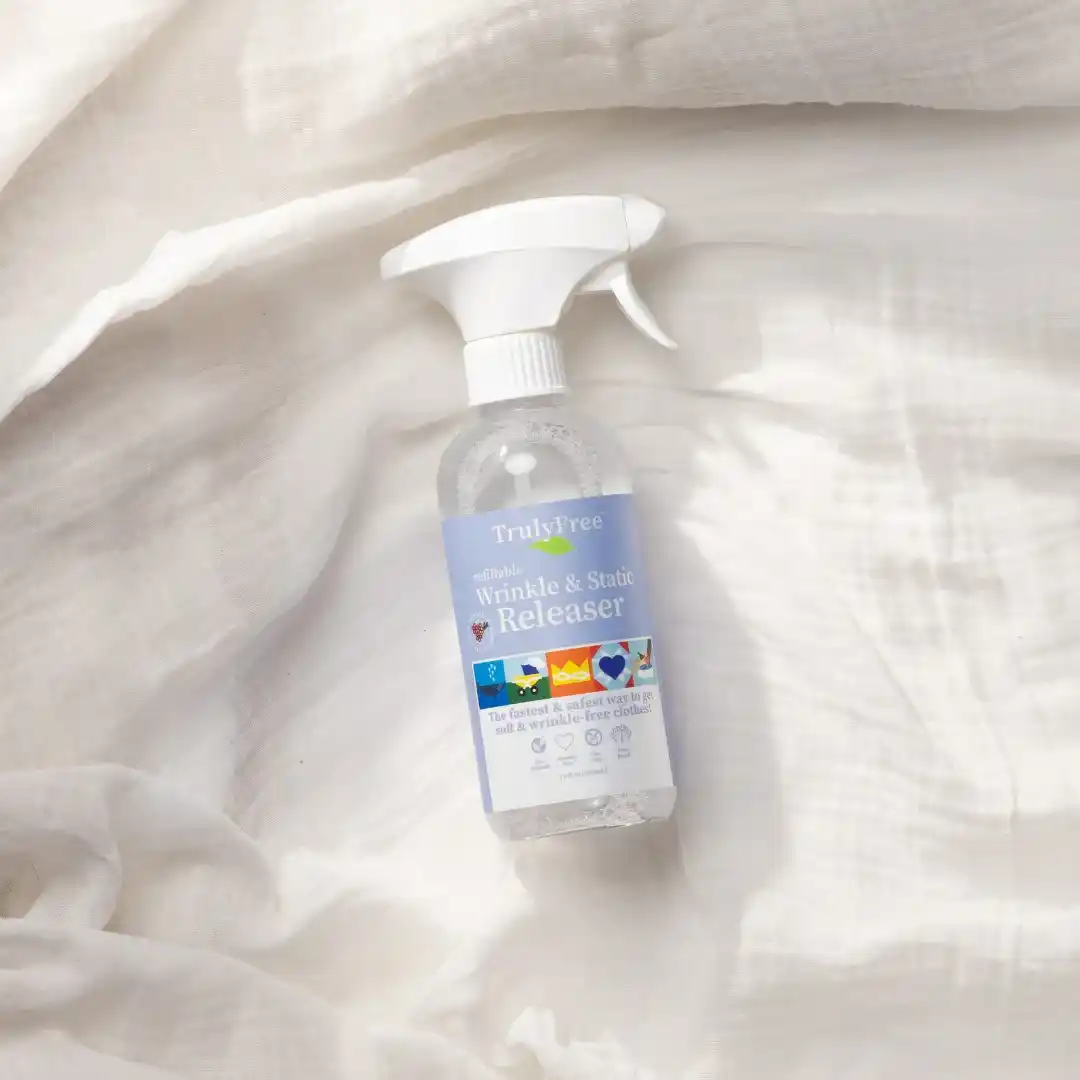 Truly Free Home’s Wrinkle & Static Releaser is a plant-based formula that relaxes wrinkles, reduces static, and freshens fabrics in just a few spritzes. And without any harsh chemicals, so it’s safe to spray around kids & pets.
