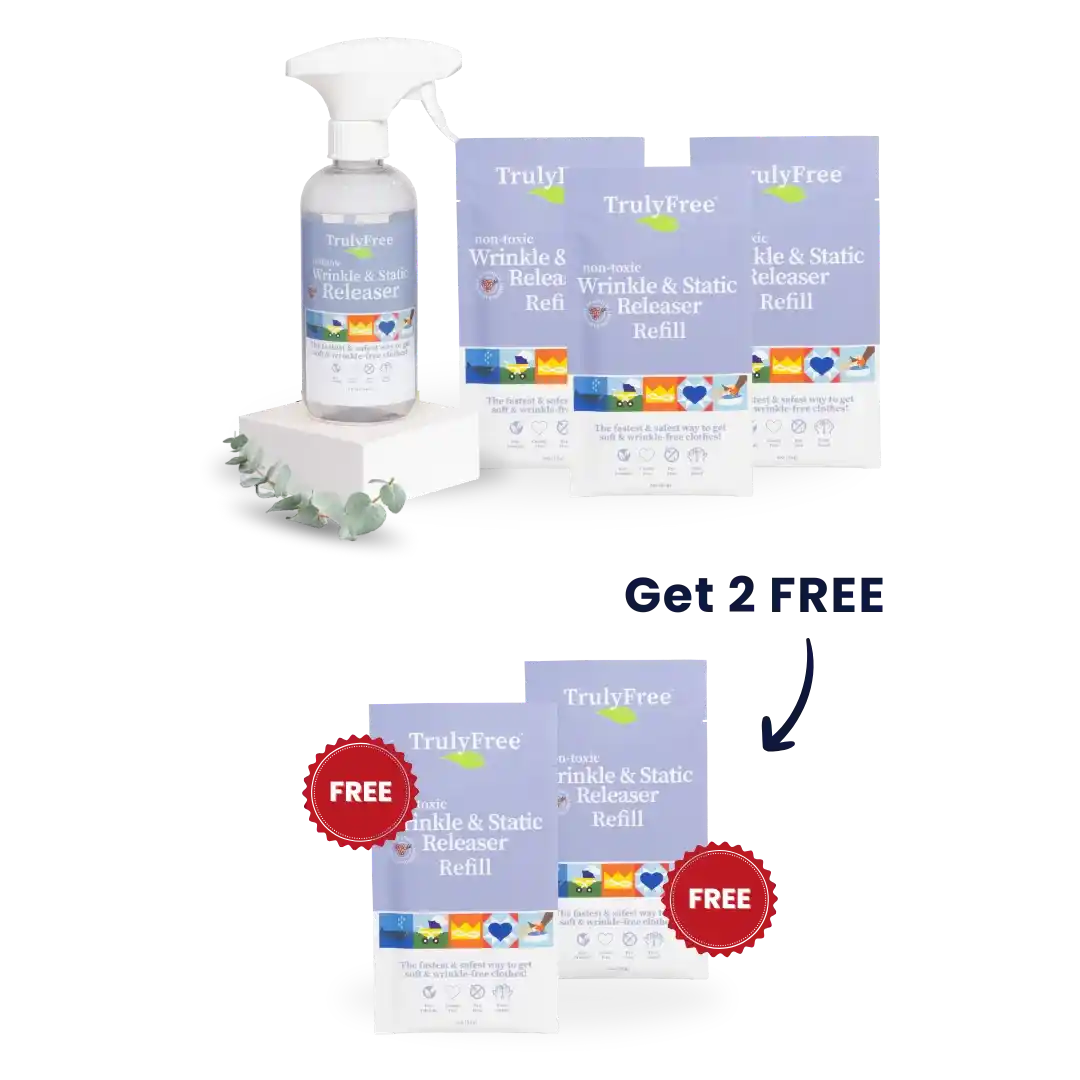 Magically de-wrinkle, de-static, and freshen clothes using only non-toxic and plant-based ingredients that keep your family safe.