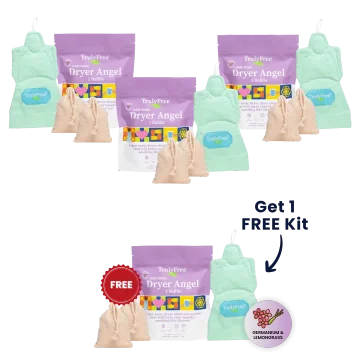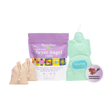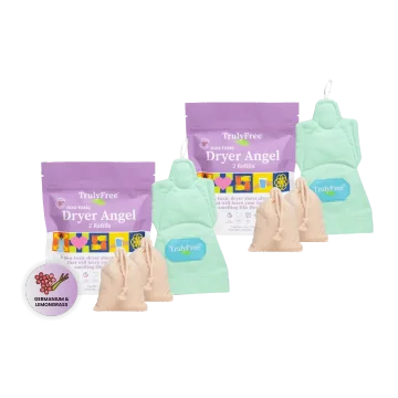 Traditional dryer sheets often contain harsh chemicals and silicone softeners. Truly Free Home’s Dryer Angels provide a delightful fresh scent, without exposing your family to these harmful ingredients.