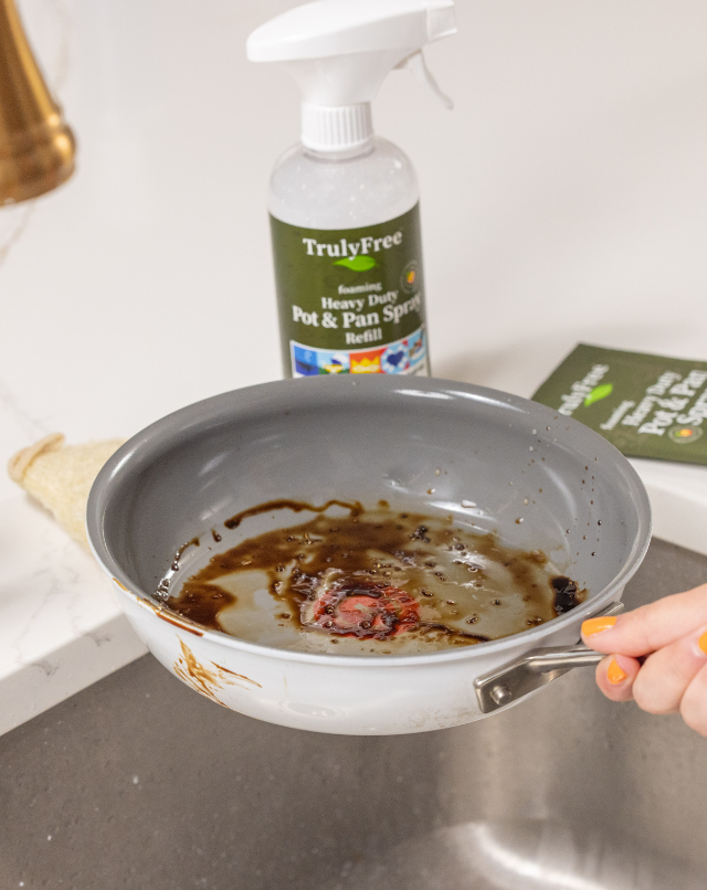 No more endless soaking & scrubbing pots and pans. This non-toxic foaming formula cuts through cooked-on grease and food residue in minutes, making cleanup quick and easy. With no harsh chemicals, it’s also gentle on your hands and cookware.